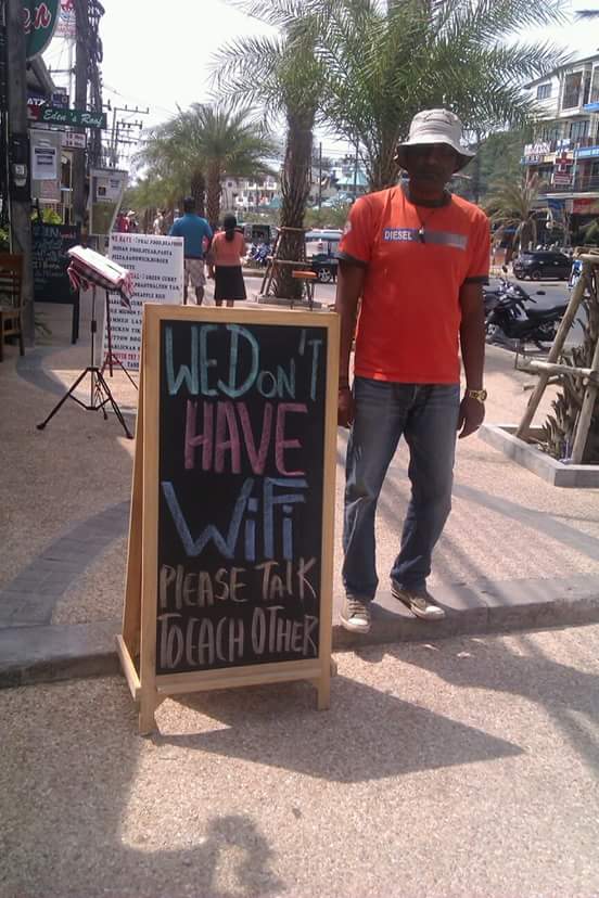 Tajlandia to wspalaniałe miejsce, na pewno chciałabym się tam kiedyś wybrać… Pozwól, że pozycze sobie na mojego bloga zdjęcie z panem z tabliczką o WiFi.. Oczywiście oznacze autora. 🙂